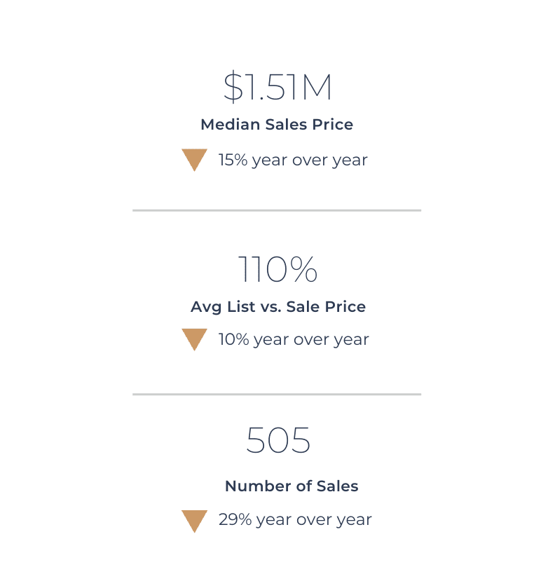 Buyer competition varies by location. Transactions above $1 million sold 14% over list and homes priced between $1.5 and $2.5 million collected the most number of offers. Homes below $1 million sold on an average of 5% over list - fewer buyers of homes under $1 million have been able to weather the interest rate volatility.