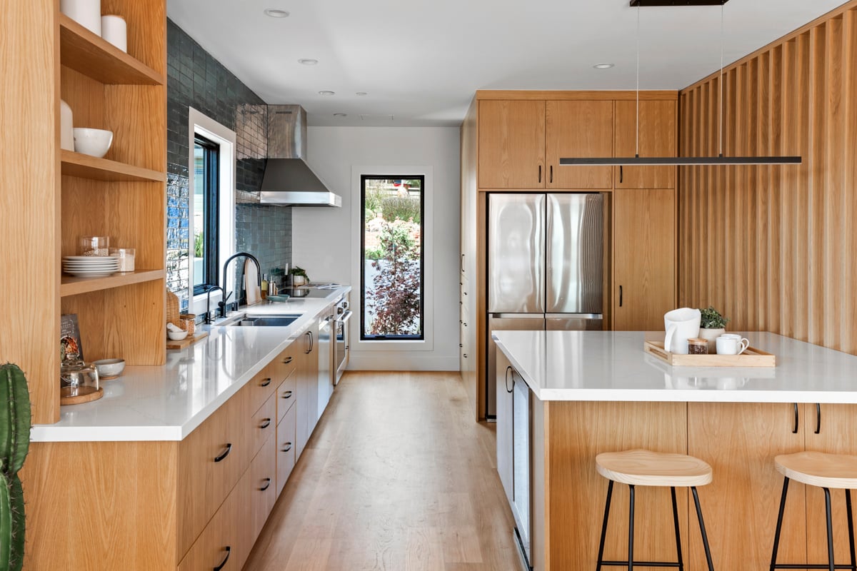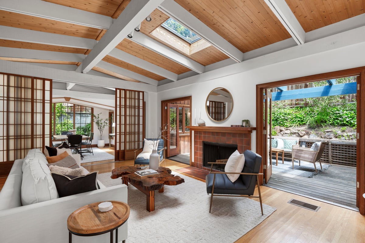 A completely updated mid-century modern classic designed by famed architect Gardner Dailey, the home was built on a rare site of 2.75 private acres. The home is an entertainer's dream with Dailey's signature style of wide hallways, doors and windows that turn rooms into gardens.